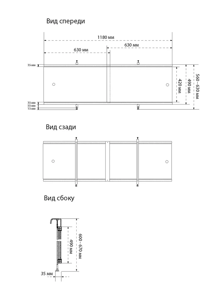 Экран в ванную комнату - простое и экономичное решение для ванной комнаты. Идеально подходит для акриловых, стальных и чугунных ванн прямоугольной формы. Экран для ванной комнаты имеет раздвижные дверки. Материал панелей: ПВХ Прочный пластиковый каркас. Регулируемая высота: 56-63 см. Конструкция экрана позволяет установить его без переделки сантехнических коммуникаций. Легкий монтаж, все необходимое в комплекте. Страна производства: Россия.
