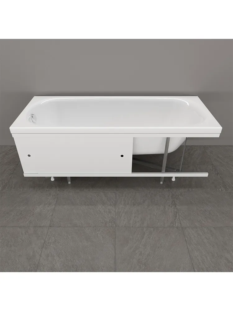 Экран в ванную комнату - простое и экономичное решение для ванной комнаты. Идеально подходит для акриловых, стальных и чугунных ванн прямоугольной формы. Экран для ванной комнаты имеет раздвижные дверки. Материал панелей: ПВХ Прочный пластиковый каркас. Регулируемая высота: 56-63 см. Конструкция экрана позволяет установить его без переделки сантехнических коммуникаций. Легкий монтаж, все необходимое в комплекте. Страна производства: Россия.
