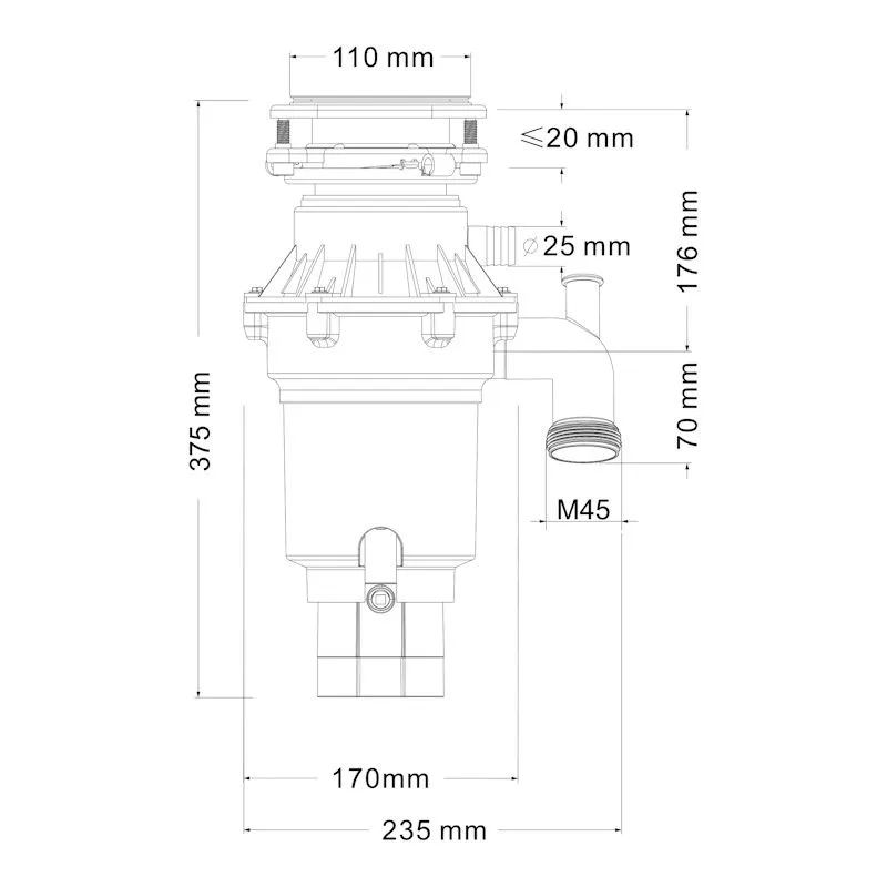 Мотор 560 Вт: оптимален для повседневной утилизации пищевых отходов.