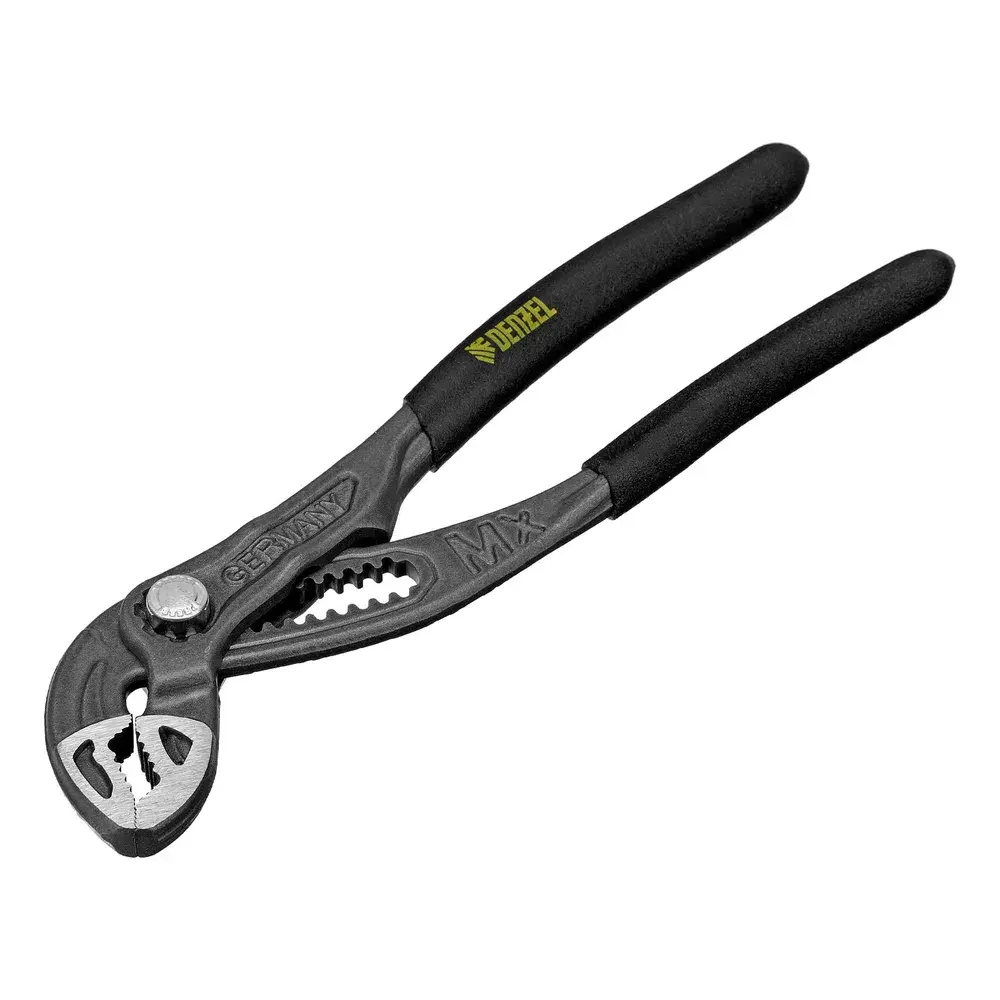 Переставные клещи Denzel 17905 длиной 180 мм, с обливными рукоятками и кнопочным механизмом, предназначены для фиксации и вращения деталей и заготовок различной формы. Подходят для захвата фитингов, труб, крепежных элементов. Инструмент удобен для работы в труднодоступных местах, используется при проведении ремонтных, монтажных, сантехнических работ.