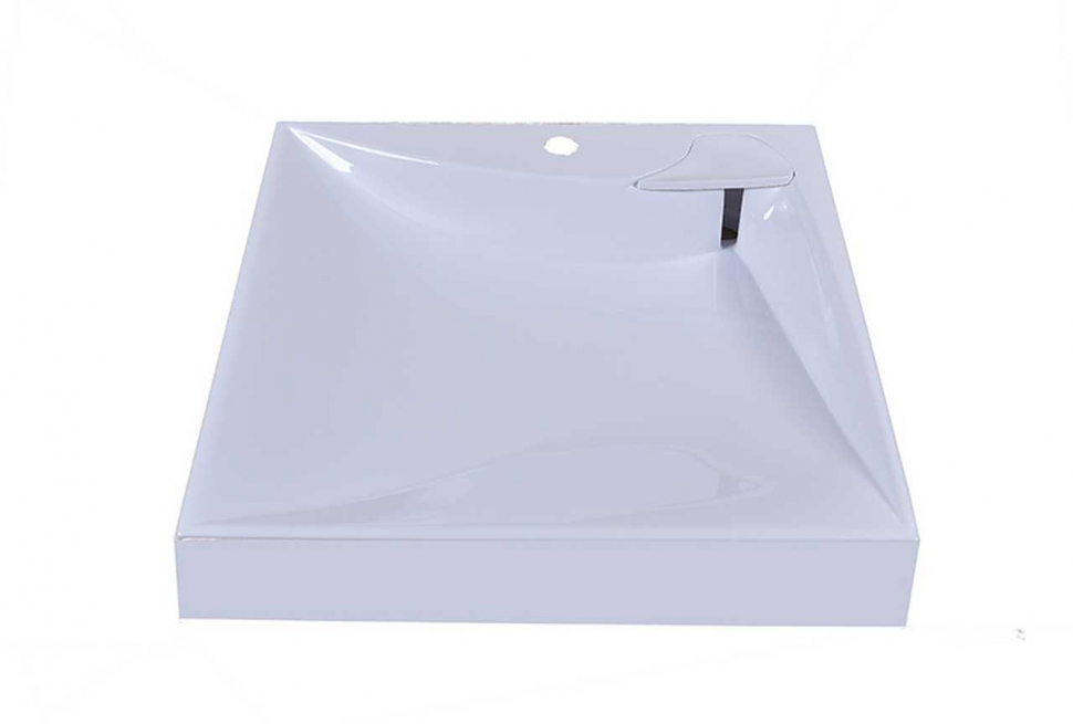 Раковина изготовлена из литьевого мрамора. Имеет отверстие под смеситель. Общая глубина раковины 59,8 см. Расстояние от задней стенки до слива - 10,5 см. Стиральная машина должна быть не глубже 49,5 см