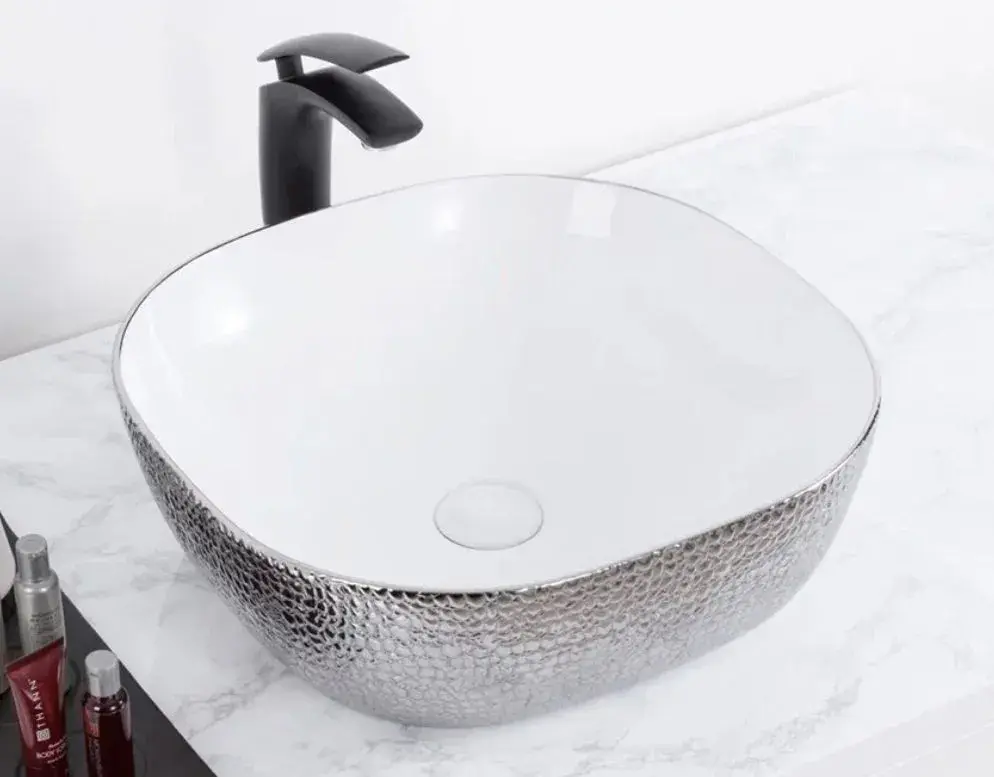 Раковина: Z-311 Zandini черный серебристый накладная, квадратная, в ванную, с антигрязевым покрытием, без переливного отверстия, без отверстия под смеситель Изготовлена из стекловидного фарфора высокого качества. Донный клапан и сифон в комплект не входят, заказываются дополнительно. Стильная накладная раковина квадратной формы, шириной 45,5 см, подходит для установки на столешницу и отлично сочетается с тумбами для санузлов разных производителей. Модель компактна и обеспечивает много места для умывальных принадлежностей, которые можно разместить на столешнице. Современная раковина с антигрязевым покрытием. Благодаря этому на поверхности не задерживается грязь, и уборка становится проще. Покрытие устойчиво к загрязнениям и не впитывает запахи. Раковина выполнена в европейском дизайне. Раковина: Z-311 Zandini черный серебристый накладная, квадратная, в ванную, с антигрязевым покрытием, без переливного отверстия, без отверстия под смеситель Изготовлена из стекловидного фарфора высокого качества. Донный клапан и сифон в комплект не входят, заказываются дополнительно. Стильная накладная раковина квадратной формы, шириной 45,5 см, подходит для установки на столешницу и отлично сочетается с тумбами для санузлов разных производителей. Модель компактна и обеспечивает много места для умывальных принадлежностей, которые можно разместить на столешнице. Современная раковина с антигрязевым покрытием. Благодаря этому на поверхности не задерживается грязь, и уборка становится проще. Покрытие устойчиво к загрязнениям и не впитывает запахи.