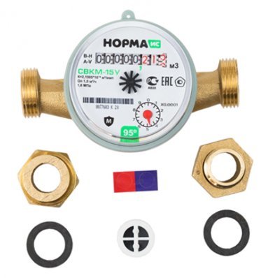 Счётчик воды СВКМ-15 У с комплектом присоед., латунь