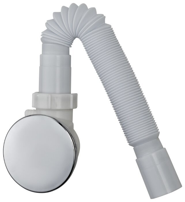 Сифон для низких поддонов Отверстие в поддоне диаметр 85мм, диаметр вывода гофротрубы 35мм, с вынимаемым пластиковым стояком