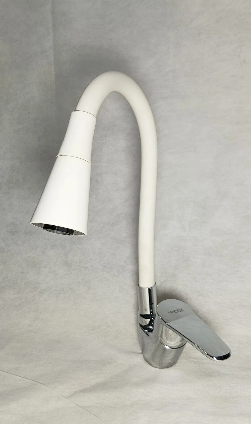 Смеситель для кухни: однорычажный, керамический картридж; поворотный излив; монтаж на одно отверстие.