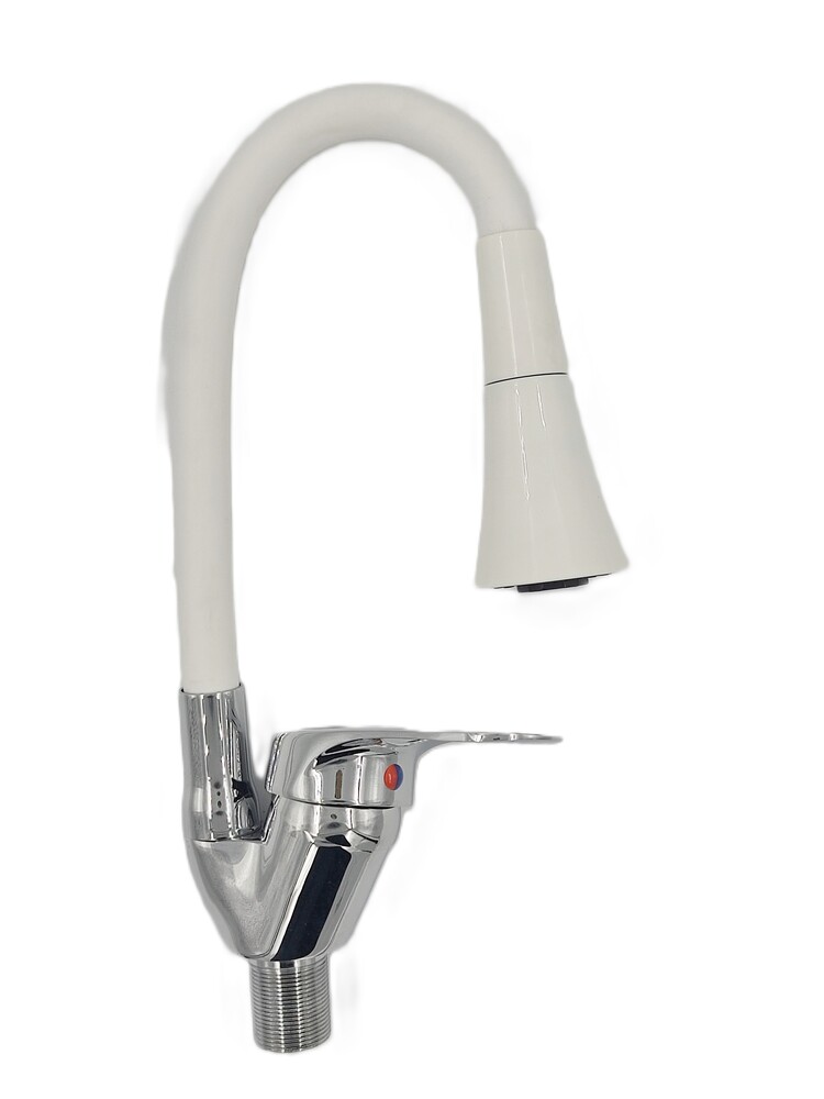 Смеситель для умывальника aQuaDv. Боковая Мет Ручка. Белый Излив. Гибкий Излив, Аэратор. Керамический картридж диаметром 40 мм.