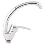 Смеситель для умывальника aQuaDv 501-01 — боковая металлическая ручка, крепление на шпильке, излив длиной 24 см и керамический картридж 40 мм.