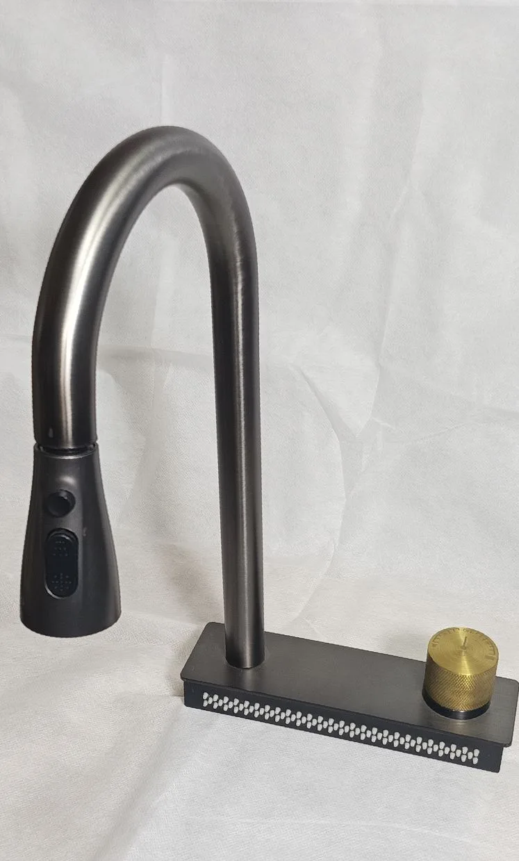 Панель смесителя для многофункциональной врезной мойки из нержавеющей стали. Цвет графит.